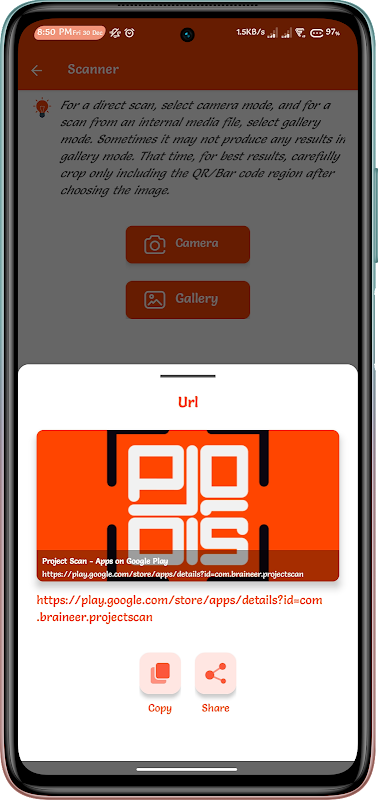 ✔ Camera and Gallery both option is available for OCR and QR scan