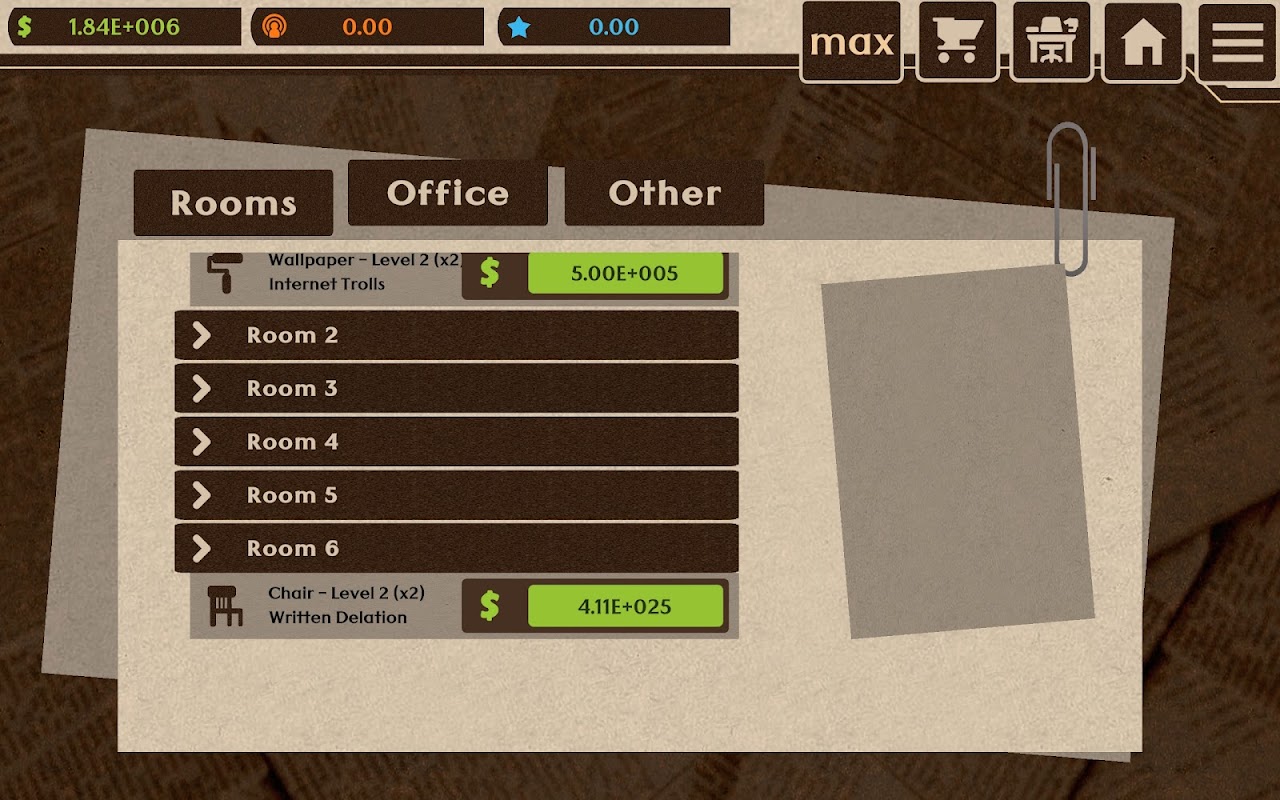 Hire internet trolls, set up your own TV studio, ad agency, or hire lobbyists - in the modern world money is influence, and influence is money. Control them directly by clicking or hire managers. Decorate and upgrade your headquarters and never forget about your own office. Watch your power grow over time and gain access to the more offensive propaganda tools.