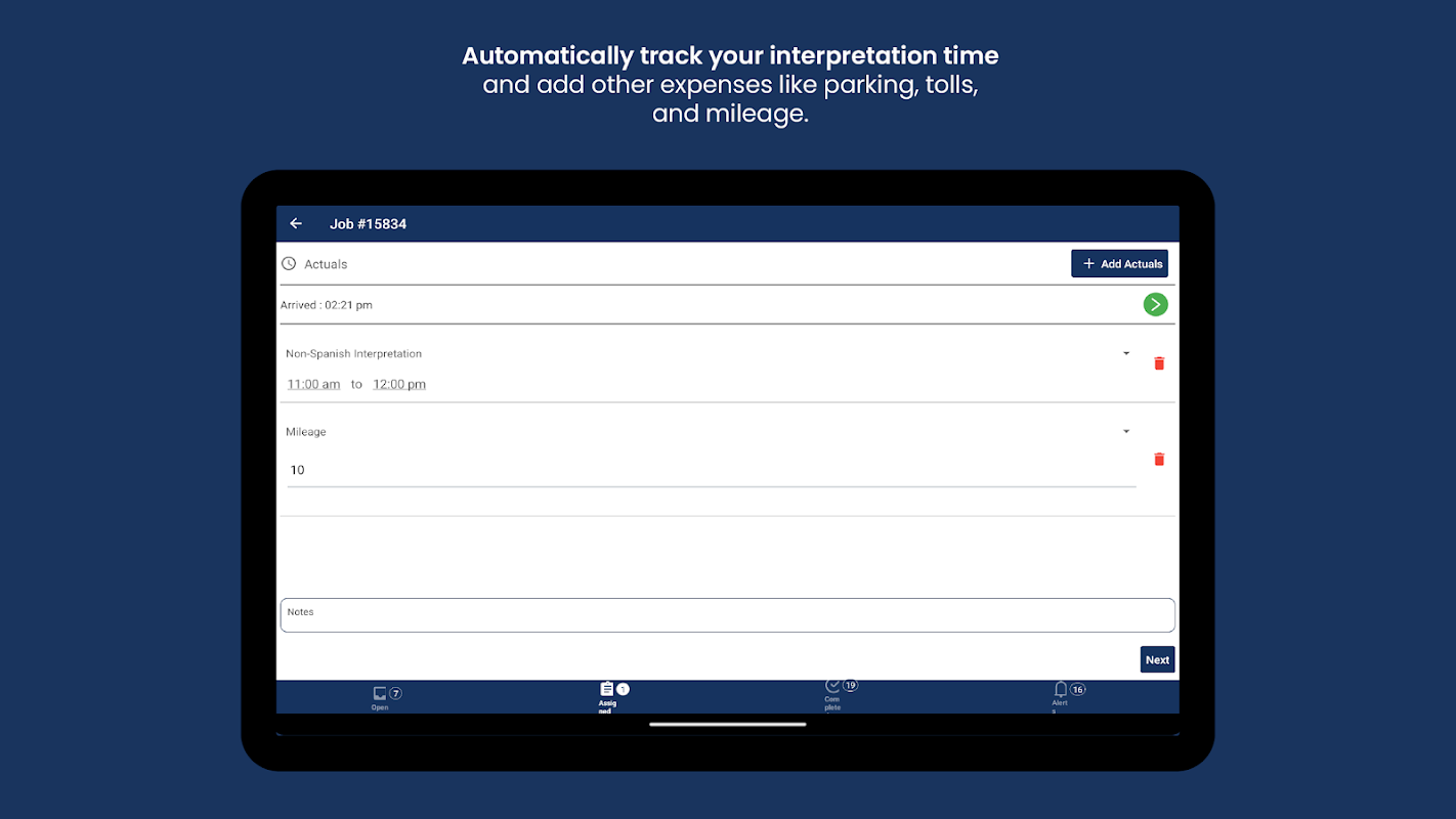 The Atrium mobile application provides interpreters with the information needed to be sure they do not miss an appointment and that their time sheets are submitted quickly, accurately and already approved by the client. Not only do the interpreters have all of the relevant information about the appointment at their fingertips, they even have a map for the location.