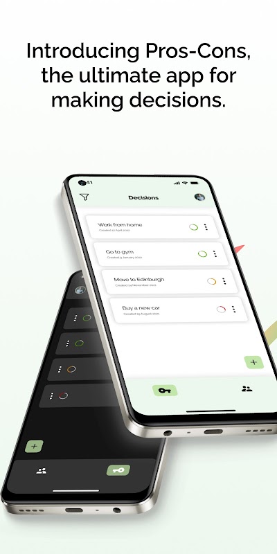 Pros & Cons is the ultimate app to help you navigate life's dilemmas. It won't make decisions for you, but it will give you the tools to always make the best choice.