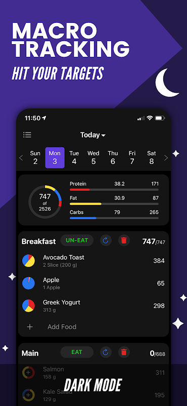 • Track a treat and your plan will automatically adjust to make sure you still hit your macro goals