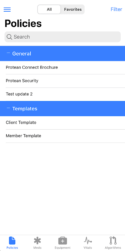 The Protean Connect app links you to your Connect site and provides syncing with the "Mobile App" module inside your platform to include the formulary, contacts, and policies/protocols. Additionally, it provides quick weight based reference information for pediatric and neonatal patients.
