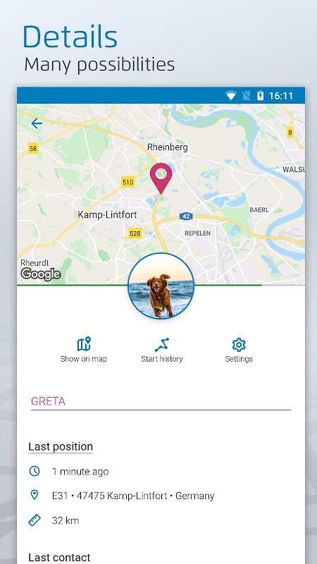 Together with our GPS trackers, this app offers reliable escort protection for people with special protection needs (children, seniors, extreme athletes, etc.) and also for securing valuables of all kinds, as well as for locating pets and farm animals.