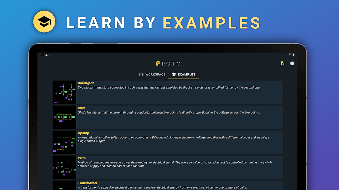 ✅ Learn about electronic circuits by examples in app