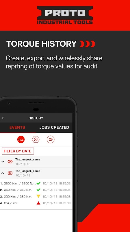 With the Proto App, take control of your Smart Torque wrench and set quickly target torque, help reduce errors, and record measurement for audit. Set values, recall favorites, and generate reports.