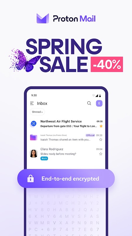 • Rigorous encryption — Your inbox is secured on all your devices. No one can read your emails but you. Proton is privacy, guaranteed by end-to-end and zero-access encryption.