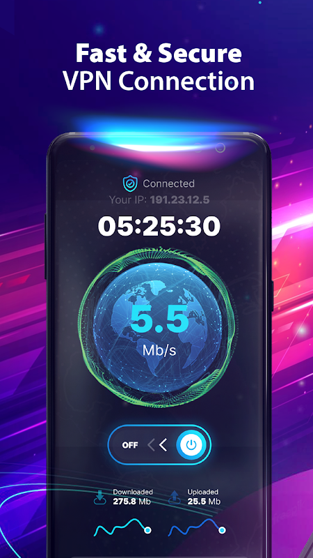 🛡️ ProxyShield VPN allows you to track the downloading speed and data transfer amount, as well as the total volume of downloaded and uploaded data.