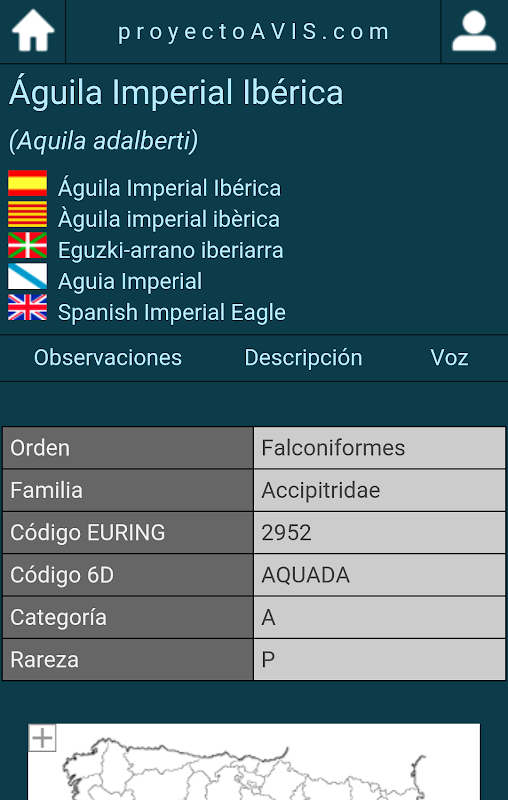 AVIS project is a collaborative basis of geolocation data from observations of birds in Spain which allows the exchange of information among ornithologists and amateur associations. The application allows mobile devices access to all information and can be done quickly and easily query the database, obtain distribution maps or add new observations to share with other users.