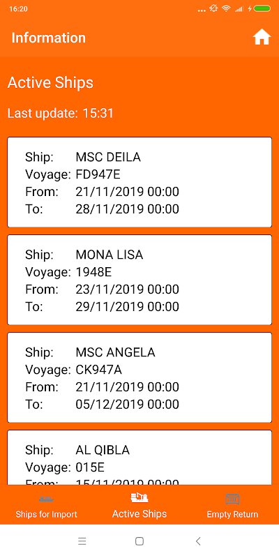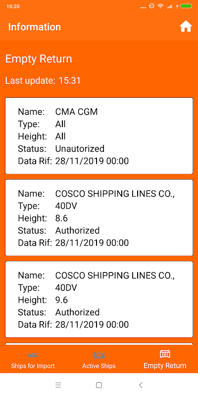 - Info about the delivery status of empty import containers subdivided by vessel company and typology