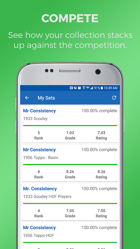 · Manage your collection & review set rankings and completion percentages