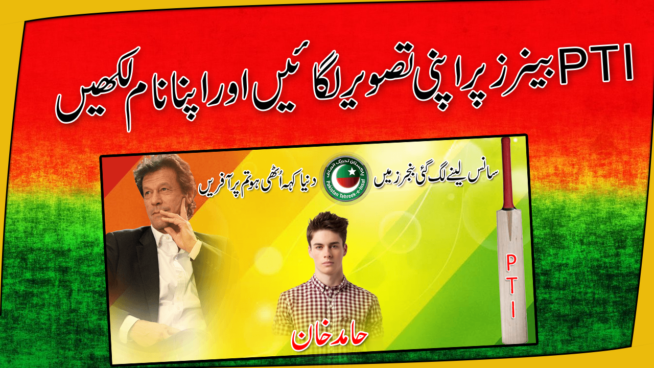 at home very easily with your photo and name and PTI salogan you can also write your