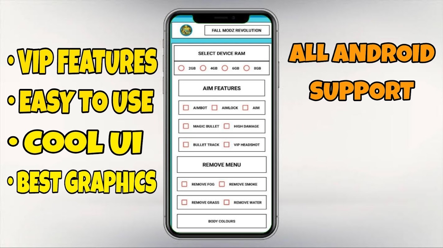 • Backup Control Layout & Sensitivity: Save your Control Layout & Sensitivity Safely with Fall Modz Gfx. You’ll never lose it & can share with your Friends!