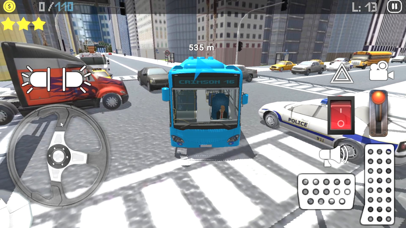 Drive in traffic carefully and refuel in time. Driving carelessly and crashing your Bus will cause you lose money. Obey the traffic rules and do not run a red light. Reaching extra checkpoint and quests on time will give extra bonus and money. Unlock new buses with earned money.