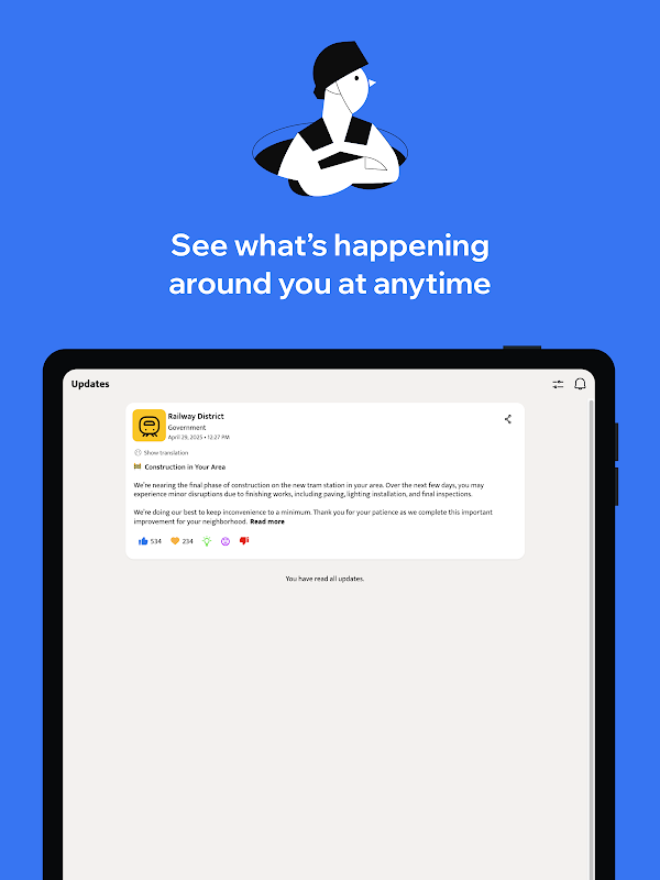 With real-time updates, photos, and official posts straight from project teams, Publiq lets you follow what matters—be it the renovation of a nearby park, a new apartment complex, or a sustainability project in your neighborhood.