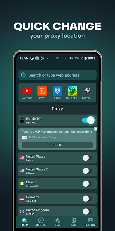 Private browser with proxy tools, VPN alternative, ad-blocking, and fast access