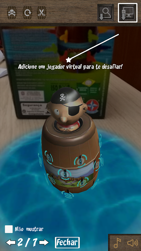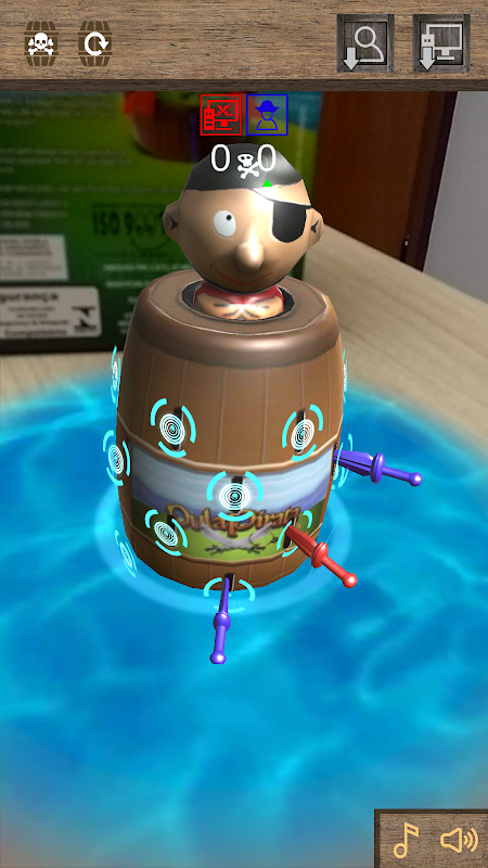 Uma espadinha aqui... outra ali... E de repente o pirata pula fora do barril! Espete o barril com cuidado, porque ninguém sabe quando ele vai pular!