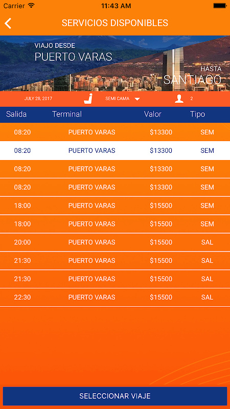 Aplicación móvil de compra de pasajes en bus, para destinos en el norte y sur del Chile (excluye a la quinta región) en esta aplicación cuentas con el registro de tus compras, viajes realizados, promociones y mucho más. ¡Realiza la compra de tus pasajes más rápida, eficiente y directa!!!