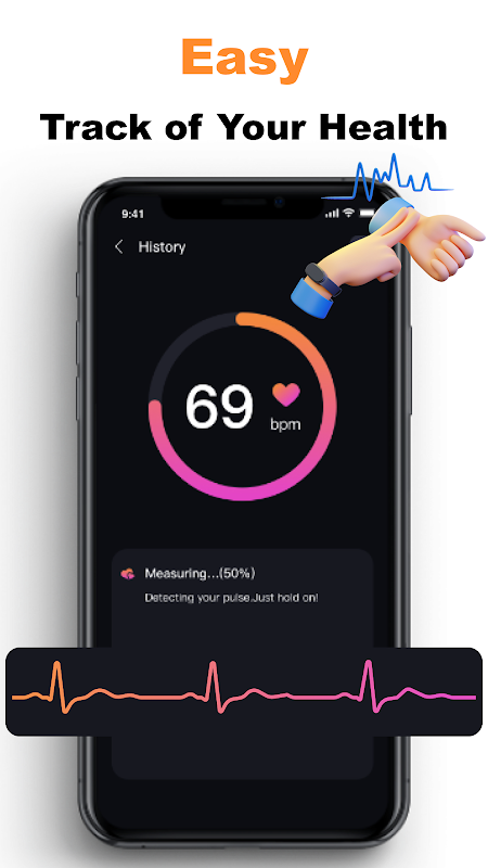 It uses a camera to read the user's fingertip pulse data, quickly and accurately measure heart rate, and provides rich data analysis and statistical functions to help users better understand their health status.