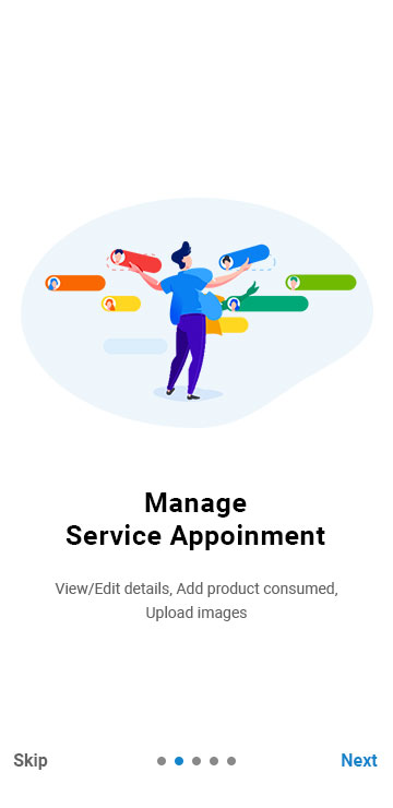 - Manage Service Appointment- View/Edit details, Add product consumed, Upload images