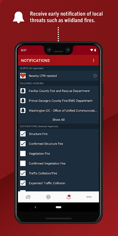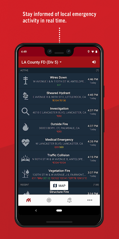 PulsePoint helps create an informed and engaged community that drives a “Culture of Action,” a key strategy in strengthening the Chain of Survival for cardiac arrest victims. In addition to nearby “CPR-needed” notifications, you can choose to be notified of significant events that may impact you and your family. These informational notifications provide an early heads-up to local threats such as wildland fires, flooding and utility emergencies. You can even monitor live dispatch radio traffic for most PulsePoint-connected communities with a simple tap on the speaker icon.