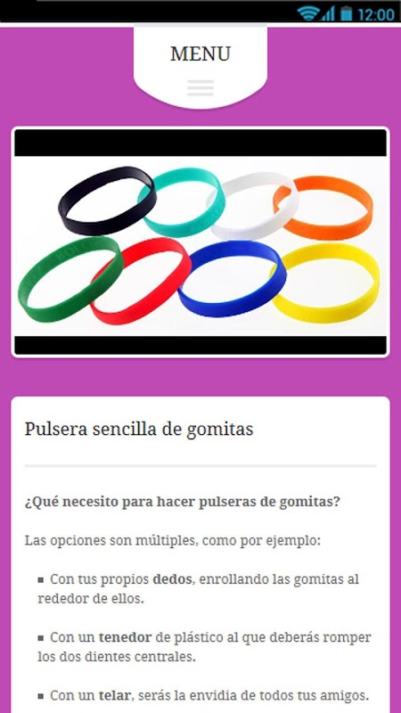 Esta aplicación contiene información paso a paso para aprender a hacer pulseras de gomas. ¡Crea diferentes combinaciones de colores!