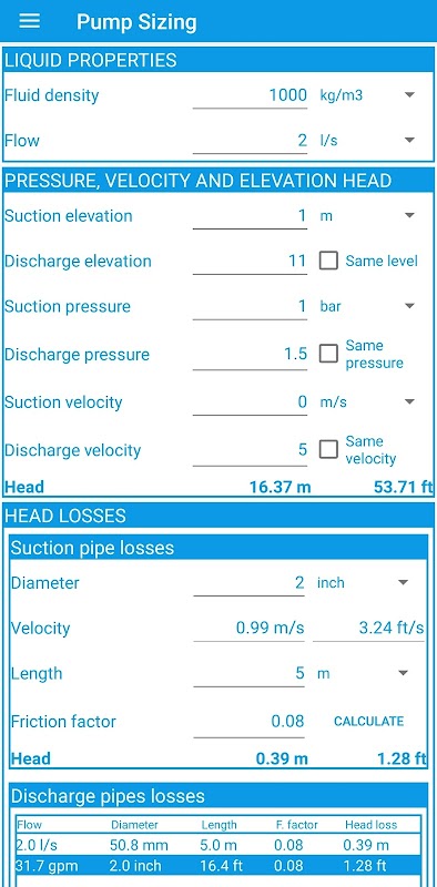 Pump sizing PRO APK Information