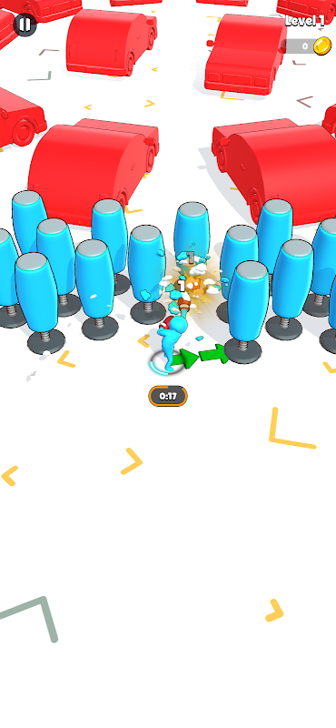 Empower yourself by punching objects, obliterate the enemy wave, and win the game!