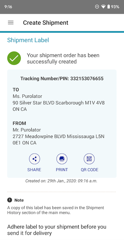 Purolator’s mobile app gives you increased visibility and control of your shipments. With the app, you can easily create, manage and track your shipments from any mobile device anywhere, and anytime.