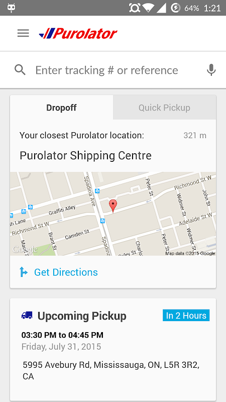 Save time by using GPS to locate your nearest Purolator shipping location, and view store hours and latest drop-off times so you can ship at your own convenience.