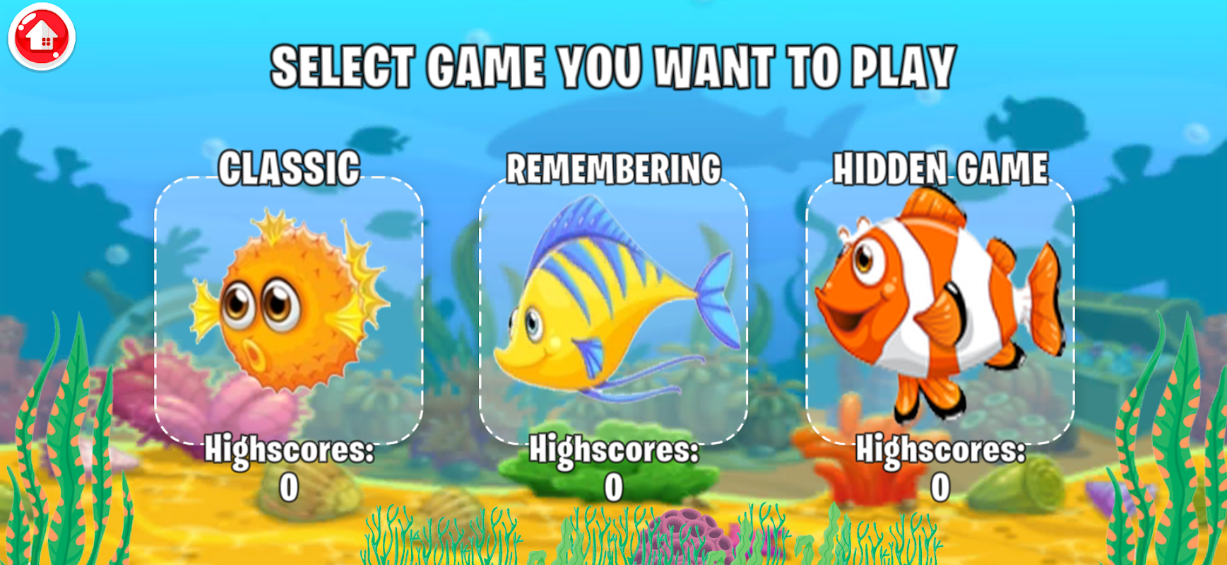 We have 3 different game modes. You can also test your memory. Correct matches will appear for you for 5 seconds. Then the fishes will turn into shadows and you have to use your memory and make the right match.