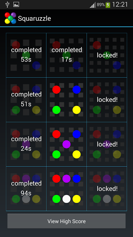 Squaruzzle is a jigsaw puzzle game. Move the pieces until the circles only have one color.