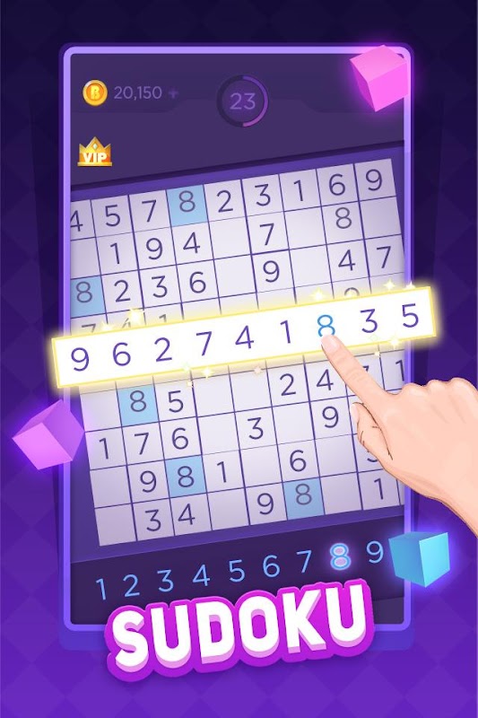 This is a game of logic-based classic Sudoku puzzle. Players need to fill the 9×9 grid with digits so that each row, each column, and each of the nine 3×3 sub-grids contains all of the digits from 1 to 9.
