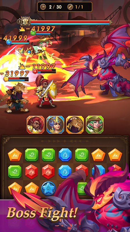 1. A mixture of puzzles and strategic gameplay! Defeat formidable enemies with match-3 combos and hero skills!