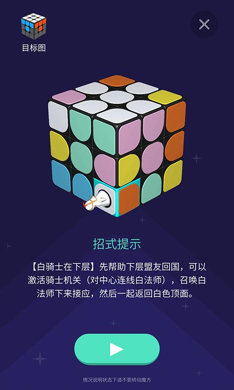 软硬件实时互动教学,根据魔方实时打乱状态自动生成教学内容,生动有趣的故事引导,鼓励用户自主思考和探索,智能监测动作对错并提示,边玩边学会还原魔方。