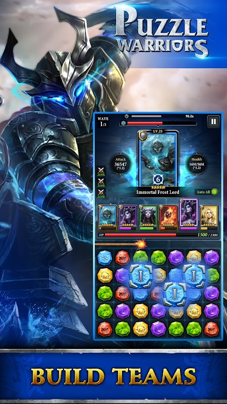 Puzzle Warriors is a match-3 game combining hero card collection. Take action to reawaken fearless heroes and unite them to battle the evil. Start your epic adventure and become the legend of this puzzle land.