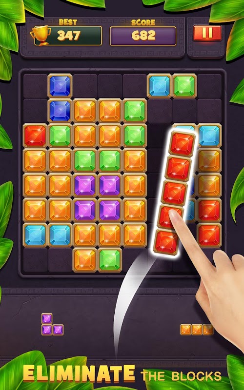 Fill the board with the jewel blocks or classic blocks, once a vertical or horizontal line was filled, it will be cleared and new space will be freed up for more!