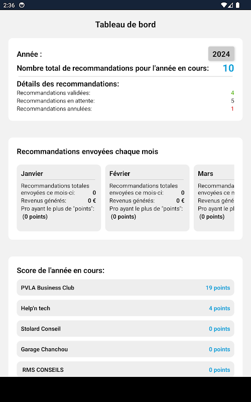 This application aims to send recommendations between members of PVLA business club, to follow those which are being validated, pending or refused.