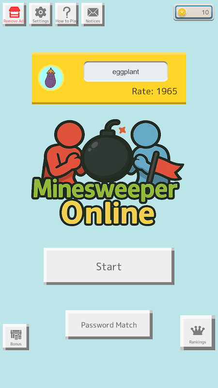 "Battle Minesweeper" is a 2-player competitive online game based on the classic Minesweeper. Players take turns opening squares on the same field, avoiding bombs, and trying to uncover as many squares as possible.