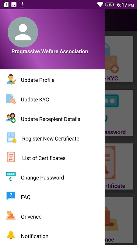 This Android Application if Developed for Progressive Welfare Association Members.