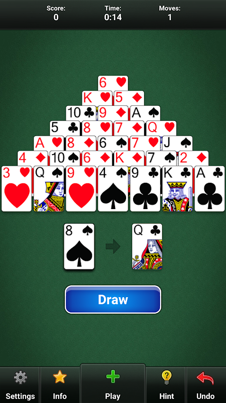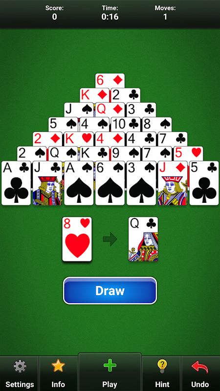 Enjoy the popular original Pyramid Solitaire card games in the world at any time and place! It's time to train your brain, challenge yourself and be a Solitaire master, try this classic Pyramid Solitaire card game!