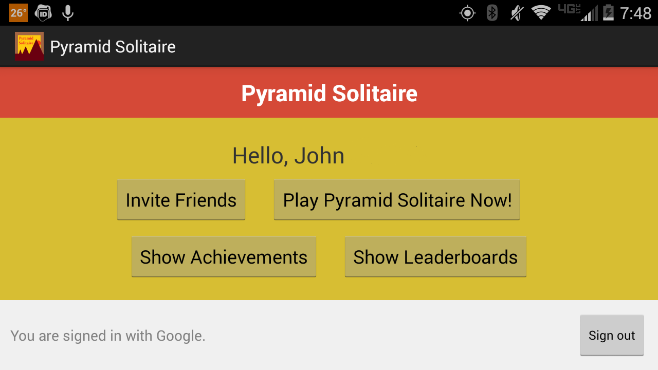 We've added App Invites to version 5.0 to make it easy for you to invite your friends, family or virtually anyone to play Pyramid Solitaire!