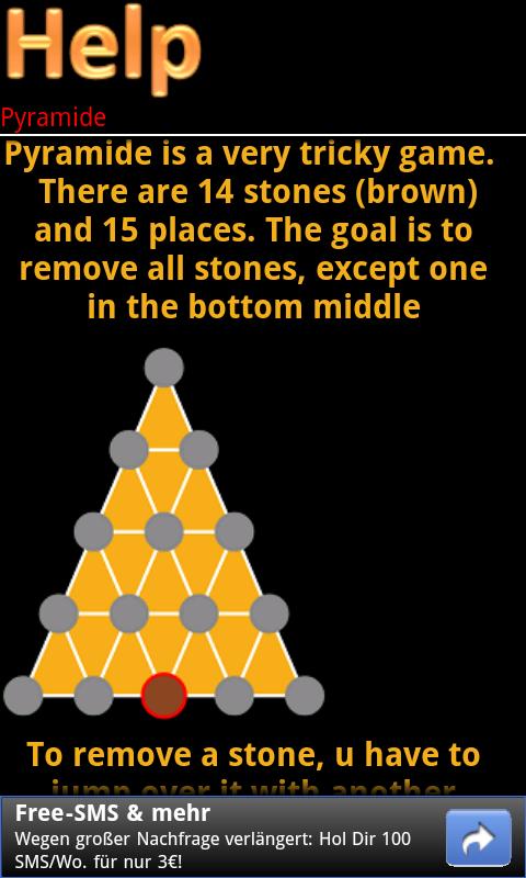 There are 14 stones (brown) and 15 places. The goal is to remove all stones, except one in the bottom middle.