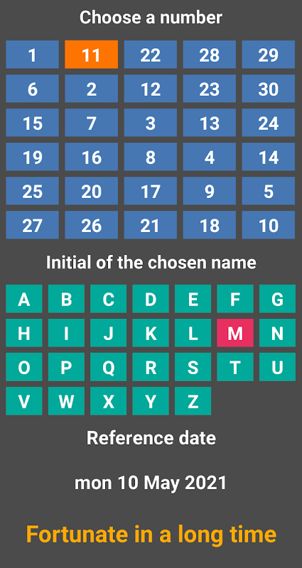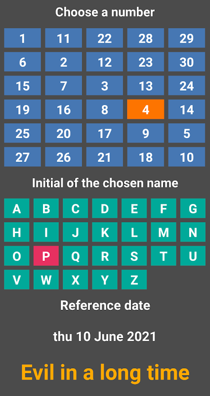 Arithmancy or divination by numbers, on which this App is based, was practised in various ways during the Middle Ages; and much confidence seems to be placed in this Pythagoras's wheel, which solves questions by a kind of sortilegy by numbers, where the result depends upon the unfettered agency of the mind and will, or the serious intent to predict any difficult event. The wheel is told to be able "to resolve all questions about any matter the querent desires, whether on past, present or future." Those consulting the Pythagoras's wheel should not ask more than one question on the same day and to refrain from all gibing, sporting, or jesting, and, above all, from all unbelief whilst using this mystical wheel to know the truth. Touch and hold date to change it; touch and hold result to clear all.