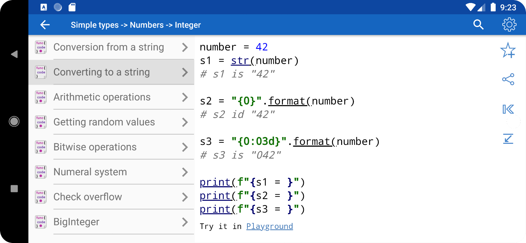 • All examples in the application are available offline. The application can be used when the Internet connection is not available.