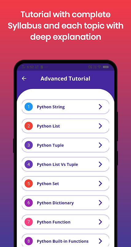 Learn Python with 60+ Python lessons. This Python tutorial will teach you the basic to advanced concepts of Python. If you are searching for an application to learn Python basic to advance without any programming knowledge. You are at right place. Whether you are an experienced programmer or not, this Application is intended for everyone who wishes to learn the Python Programming language.