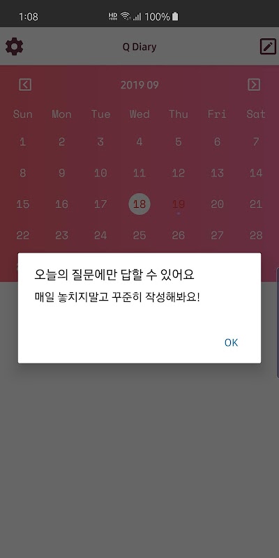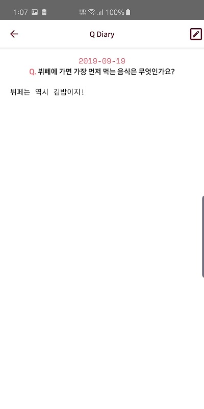 Q Diary는 질문을 하나씩 제공하여 작문하는 것에 도움을 드립니다.