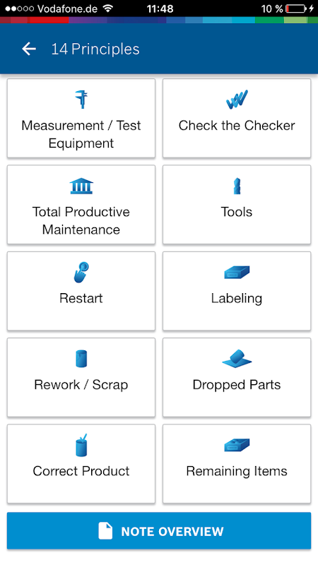 The Q-Basics2go App is a newly designed app to improve the establishing of standards in the value stream context. With this app a new possibility is given to make your work more efficient. The Q-Basics2go app supports you in taking notes and comments for the respective 14Q-Principles.