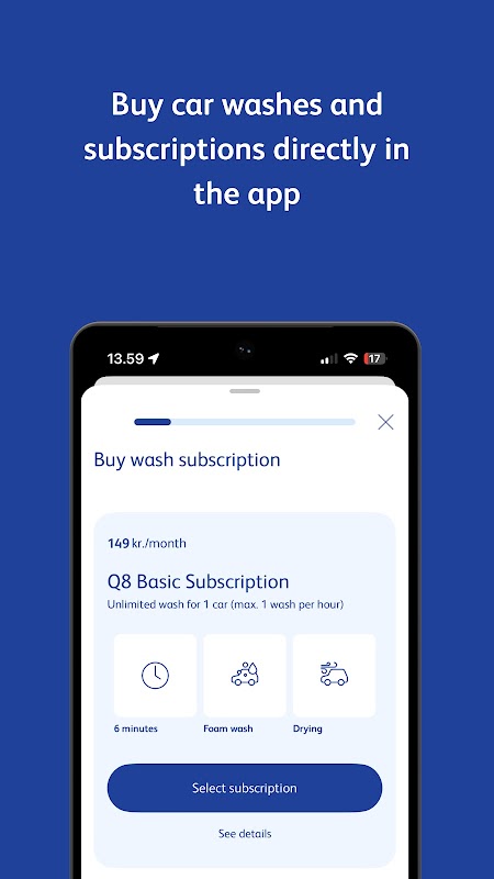 With the Q8 app, we’ve made it easy and convenient for you to fuel and wash your car – while also enjoying great deals with our coupons when you visit our stations. Add your Q8 card or Dankort, Visa or Mastercard, and you're ready to fuel or wash. We also store your receipts in the app.