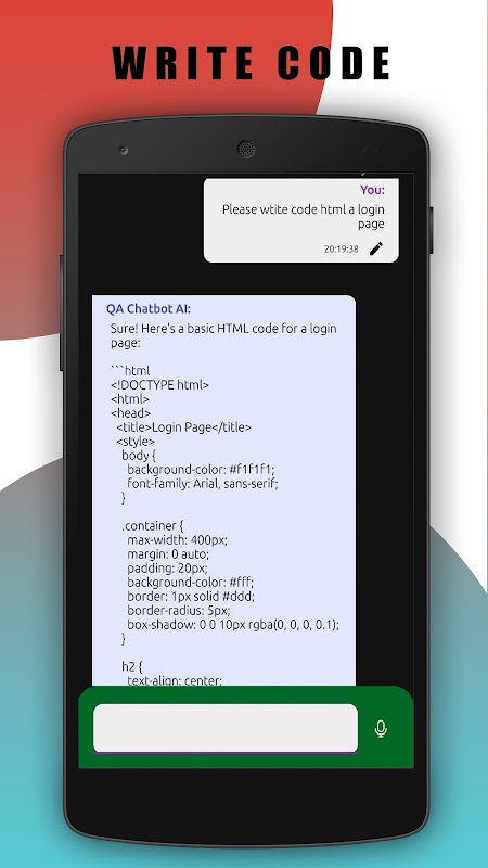 QA Chatbot AI application is designed to provide users with quick and accurate answers to their questions. AI Chatbot Online, chat to AI on phone. Powered by OpenAI's API, our bot has advanced language processing capabilities that allow it to understand and respond to natural language inputs.