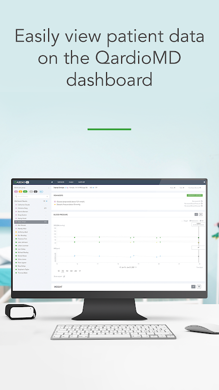 QardioMD continuously displays data in an actionable way, saving the doctor time and revenue while allowing them to provide better care. This HIPAA compliant solution allows clinicians to remotely monitor an unlimited number of patients and see who most needs their attention and who is doing well, all with a click of a button.